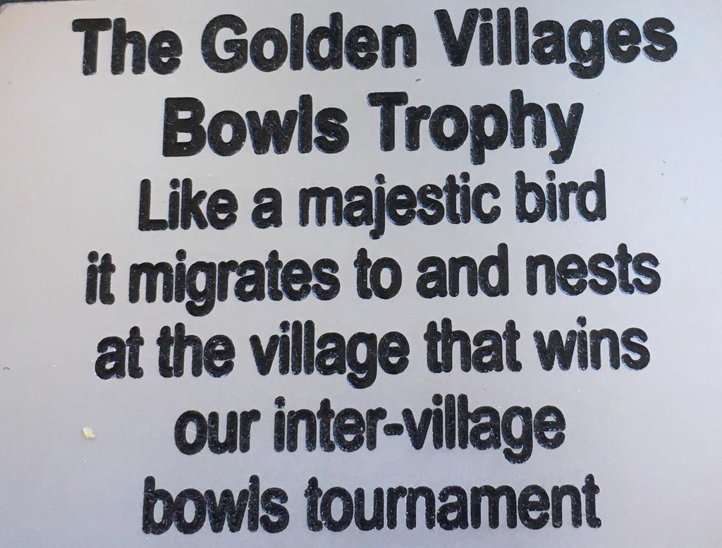 Friday 21 April was Golden Harvest No 1 Retirement Village’s turn to host the annual bowls tournament against their neighbours, Village of Golden Harvest Two. The successful event was well attended by spectators from both villages supporting and applauding their teams. A new floating trophy, depicting a bird that migrates between the villages, was donated by the VGH No 1. At an enjoyable function after the event, John Ferrier, chairman of Village No 1 bowls club, presented the trophy to the winners, Village Two. The trophy will nest at our opposition’s home for now. Village No 1 bowlers are determined to ensure it migrates back to their village after the next tournament against our neighbours.