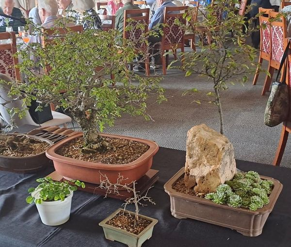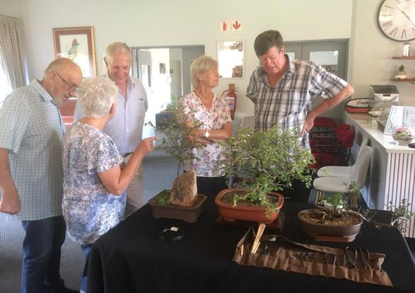 On Saturday 27th January over fifty residents of the Golden Harvest No. 1 Retirement Village attended a breakfast presentation given by a village resident. Stan Simcox presented an informative talk about the art of Bonsai entitled “Bonsai through the ages.” His interesting talk commenced with a brief explanation about how Bonsai originated 1800 years ago in China before it was introduced to Japan in the 13th century. During his presentation Stan showed trees from his collection of twenty indigenous Bonsai trees. After answering many questions, Stan was given a thunderous round of applause.