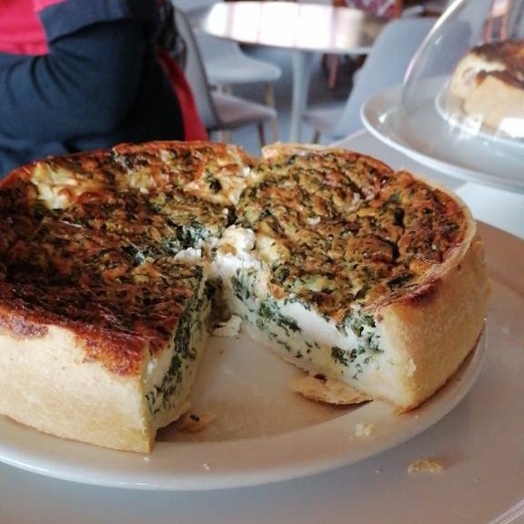 Dream Bean serving some delicious quiche – Bacon and Cheese or Spinach and Feta