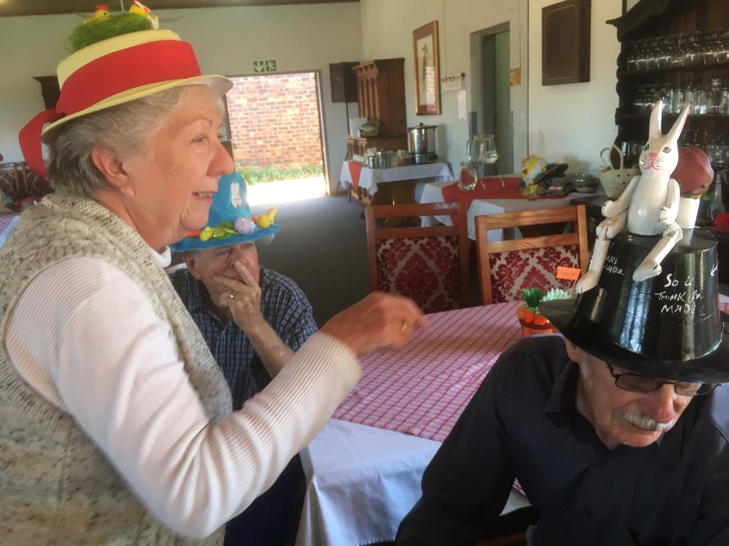 Good morning fellow villagers, We have pleasure in inviting you, both ladies and men, to an Easter Bonnet tea. We look forward to your attendance in the dining hall on Thursday, 13th April, at 3 o’clock. It’s absolutely free. The only entrance criteria is for you to wear, an Easter bonnet, or funny amusing hat. We look to you joining us for an afternoon of fun. Ben and Trish. On behalf of your entertainment committee.