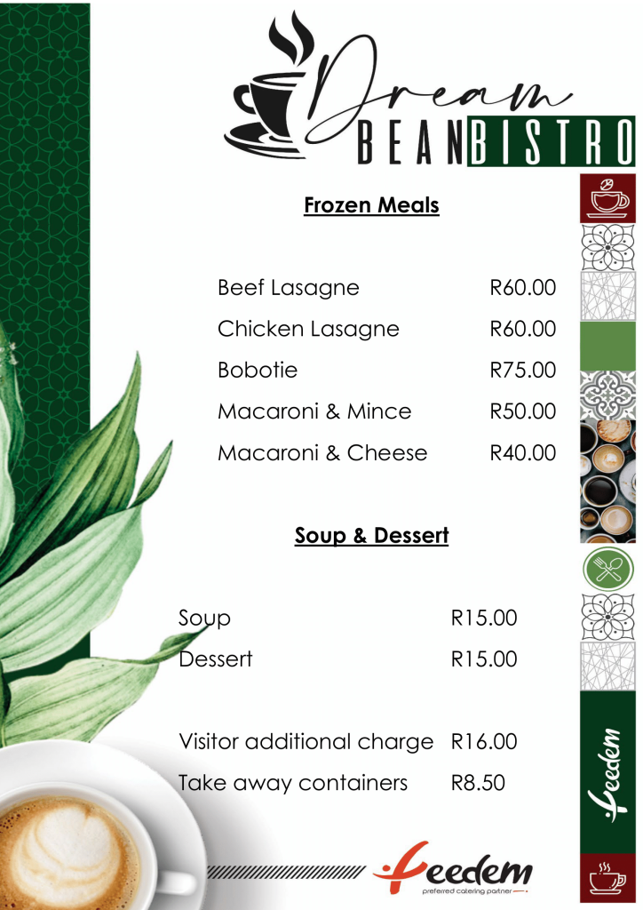 Breakfast, Teas, Coffee and Pastries are served in the dream Bean Coffee Corner from 08:00 to 11:30, 11:30 to 13:30 closed for lunch, and 13:30 to 15:00
