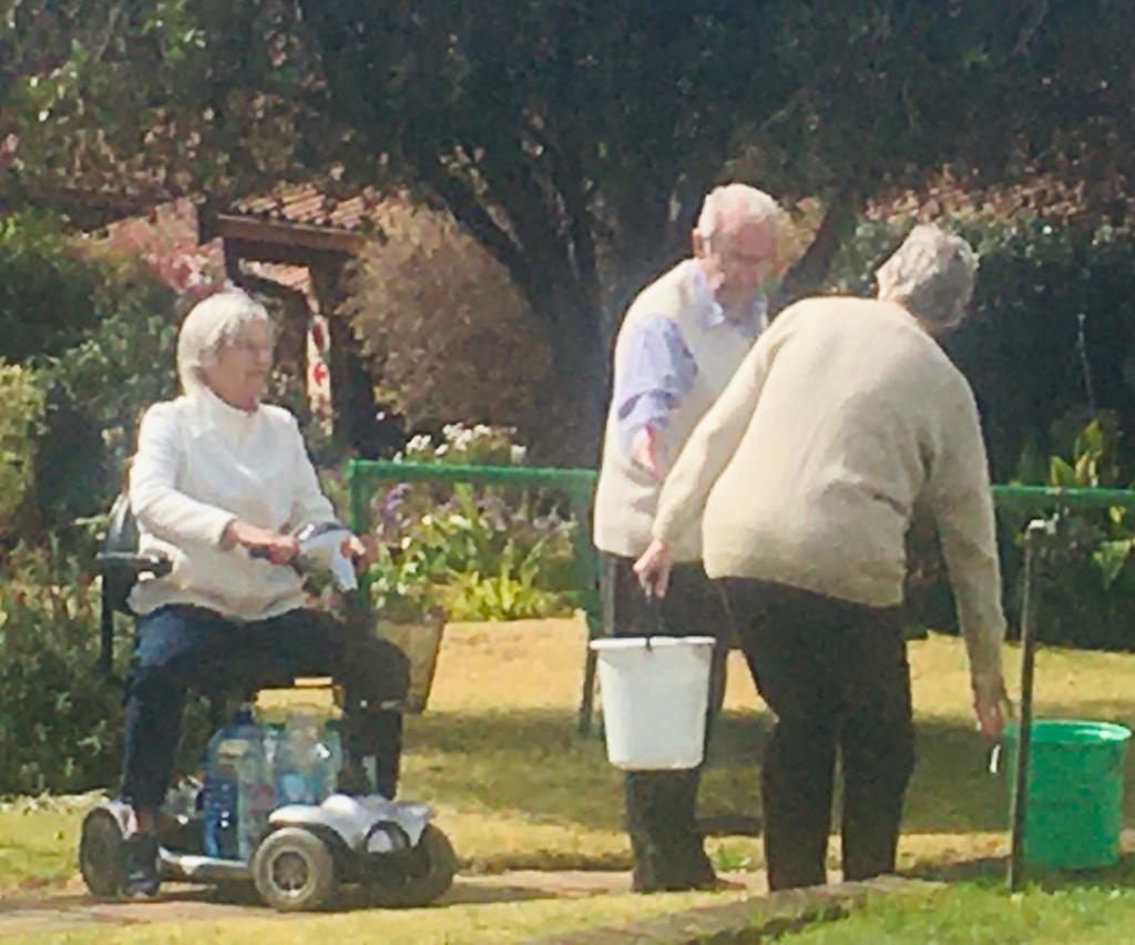 During the recent prolonged, seventy two hour, municipal water outage experienced in Randburg last week the residents of the Golden Harvest One retirement village were able to obtain water from the village borehole. Residents who were unable to collect water were assisted by the village maintenance staff who collected and delivered containers to the homes.