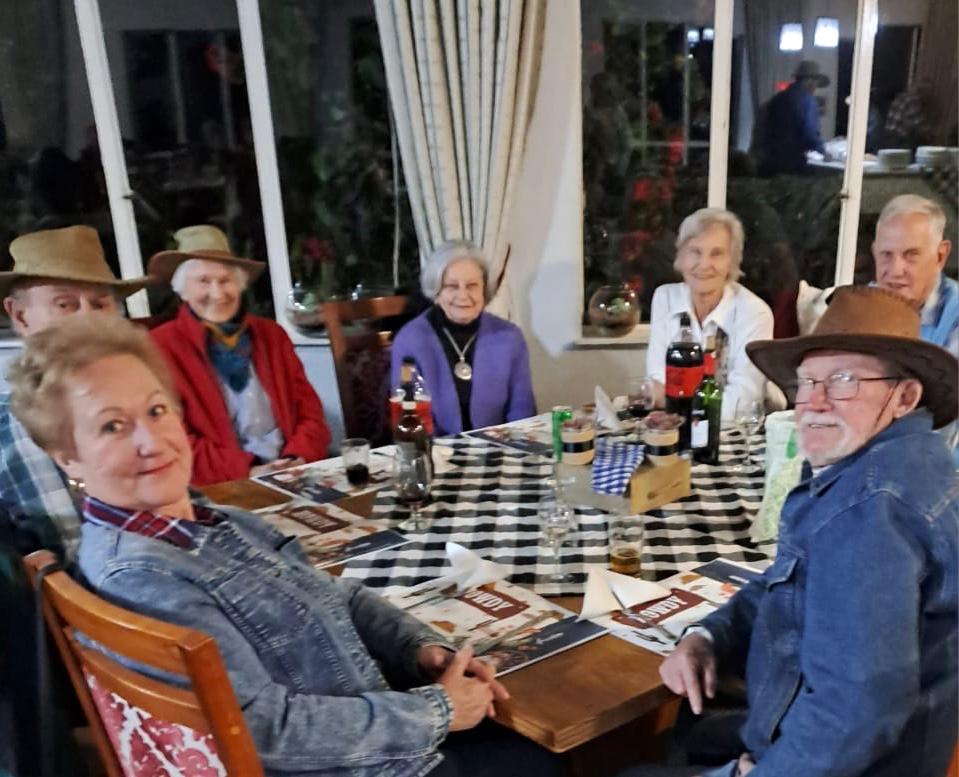 See how the Golden Oldies enjoy themselves last Friday. What an evening! Forty five Golden Harvest residents let their hair down and made ‘whoopee’ on Friday night at the Country and Western dance. Guests were appropriately dressed in cowboy and cowgirls attire. The dining hall was festooned with appropriate decorations that included real saddles. Once again our caterers, Feedem, came up trumps and served delicious hamburgers and salads. Heartiest congratulations to our entertainment committee for organising another successful event. The Golden Harvest One residents are blessed to be able to have so much fun at our social gatherings.